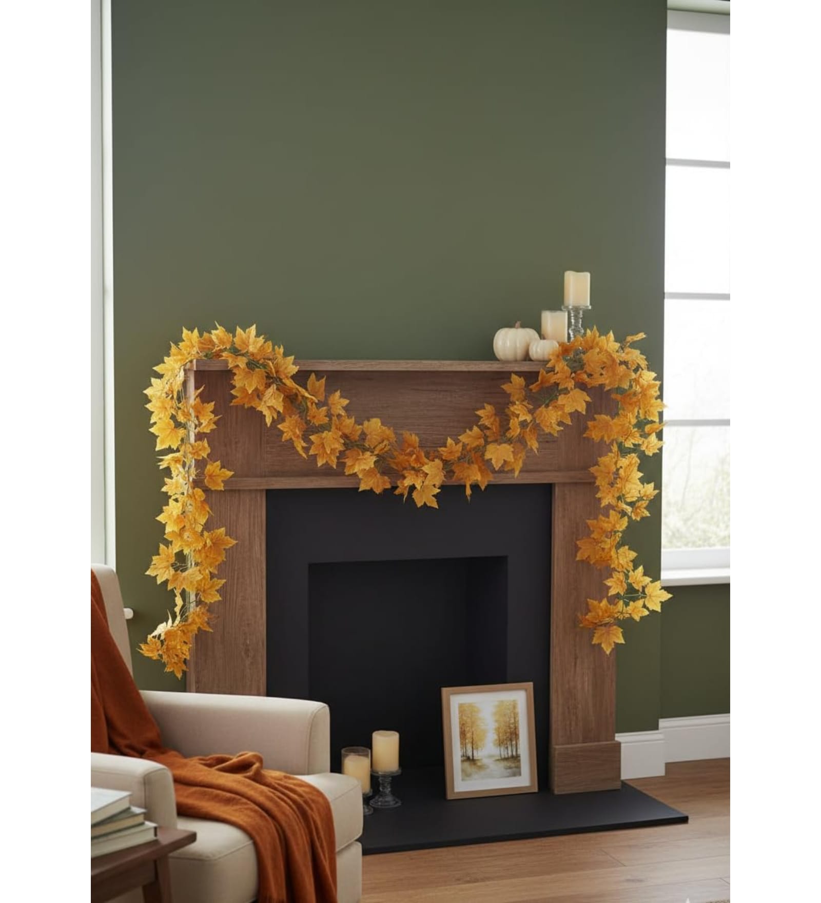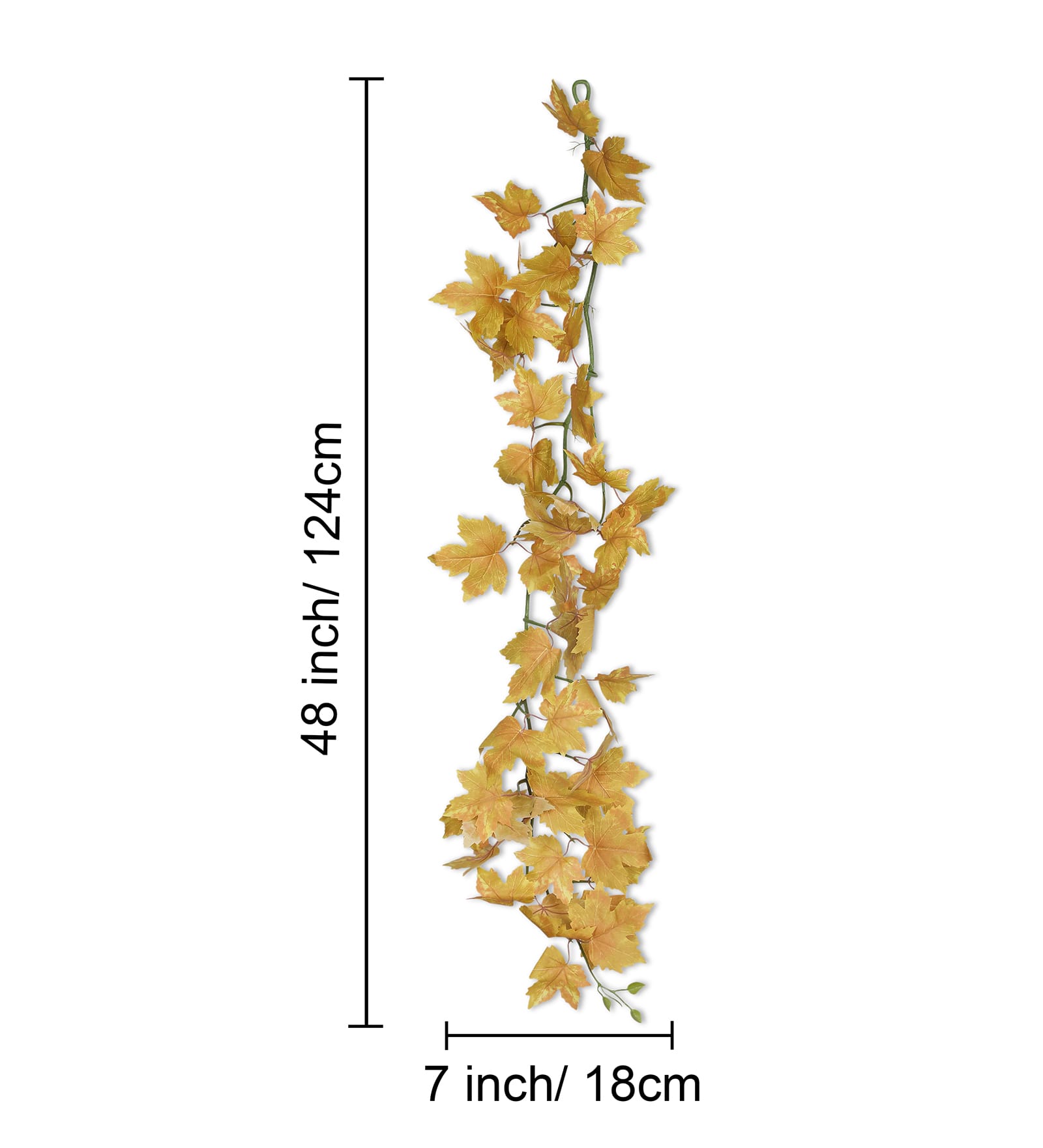 Foliyaj artificial maple leaf vine with yellow leaves. The vine is approximately 48 inches long and can be hung on walls, doorways and windows to improve the ambiance of your surroundings. The vine is shipped in 2 parts for ease of logistics. Please attach the 2 pieces to make 1 vine. Please do not bend the vine, it will break. The vine has 24 leaves