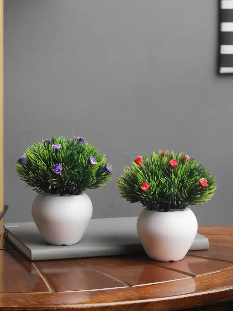Bring home this real looking artificial bonsai tree with 3 heads, a thick stem and green pine leaves. It is 26 cms in height and 25 cms in width and can be put on your desk, dining table or any side table easily. Long lasting and easy to clean. A great gift for house decoration. It comes with oval brown pot.